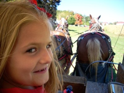 There were no raspberry berets, but there were pedal carts. And little-people hay bale mazes where you had your own up-front ariel view. And a horse and buggy ride for which she got picked to ride up front.