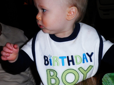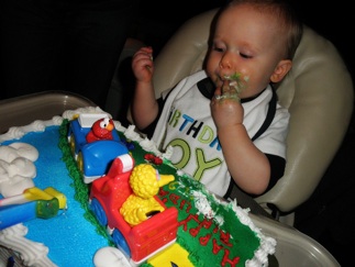 the cake didn’t go over so well. On his actual birthday however, he had matured immensely and loved the cake. And he got mad and cried again, but this time because we took it away from him.