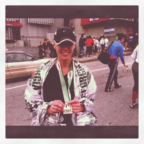 When I crossed the finish line, a woman put a medal around my neck and said, “Congratulations!” Next a man approached and wrapped me in a foil blanket to trap in the heat. It was over. It was finished.