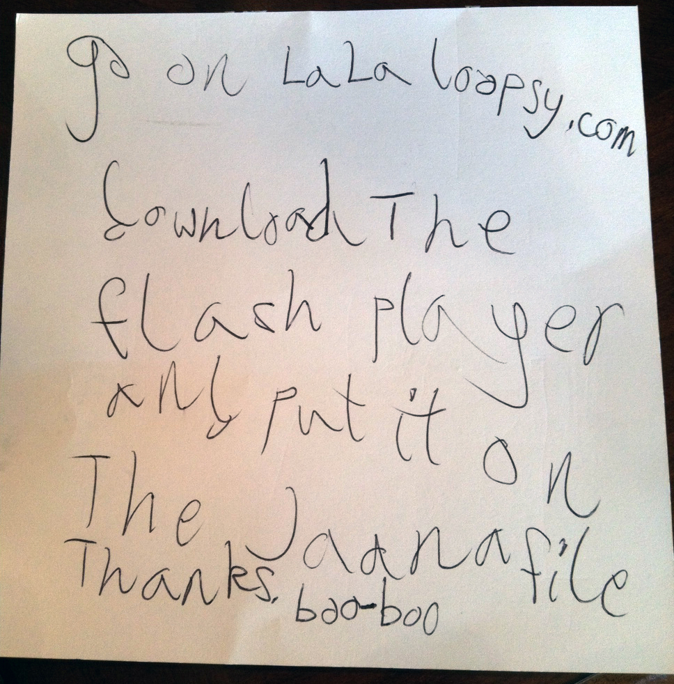 7. Me Uber-Techy Li’l Girl. I know she’s only seven, but my girl can keep up with technology like the best of ’em. She left this note for me one morning:
