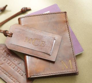7. For The Traveler. You’ll experience a wee bit of pride each time you whip out your passport in this monogrammed, saddle leather holder from Pottery Barn. Get the matching luggage tag and people will wonder why you’re flying coach. Cost: $29 for the holder, $8 for the luggage tag.