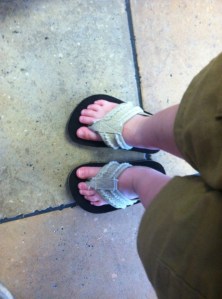 - Paxton’s first pair of flip-flops