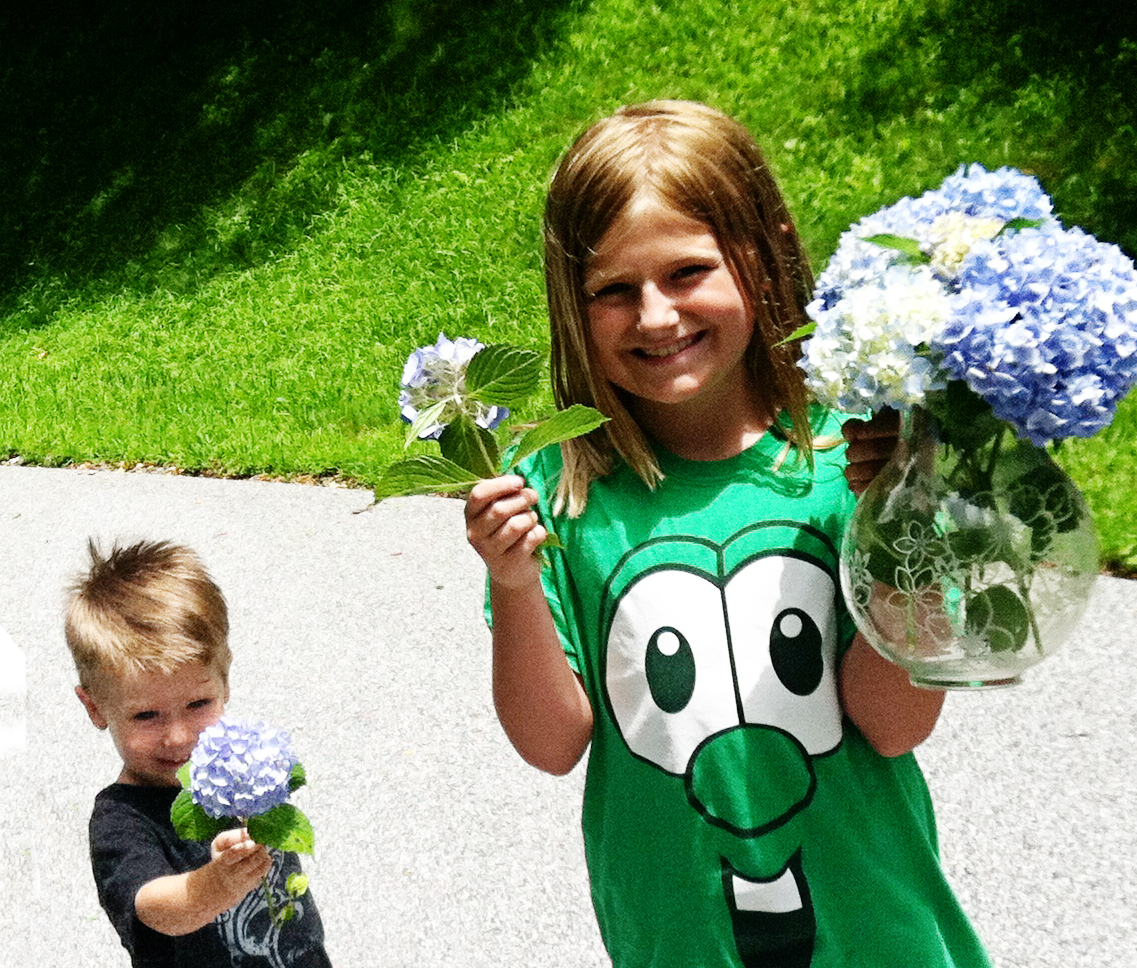 These hydrangeas live at a nearby vacant house. Each summer, I walk over and clasp my hands in pleasure over their vibrant cornflower color and massive size.